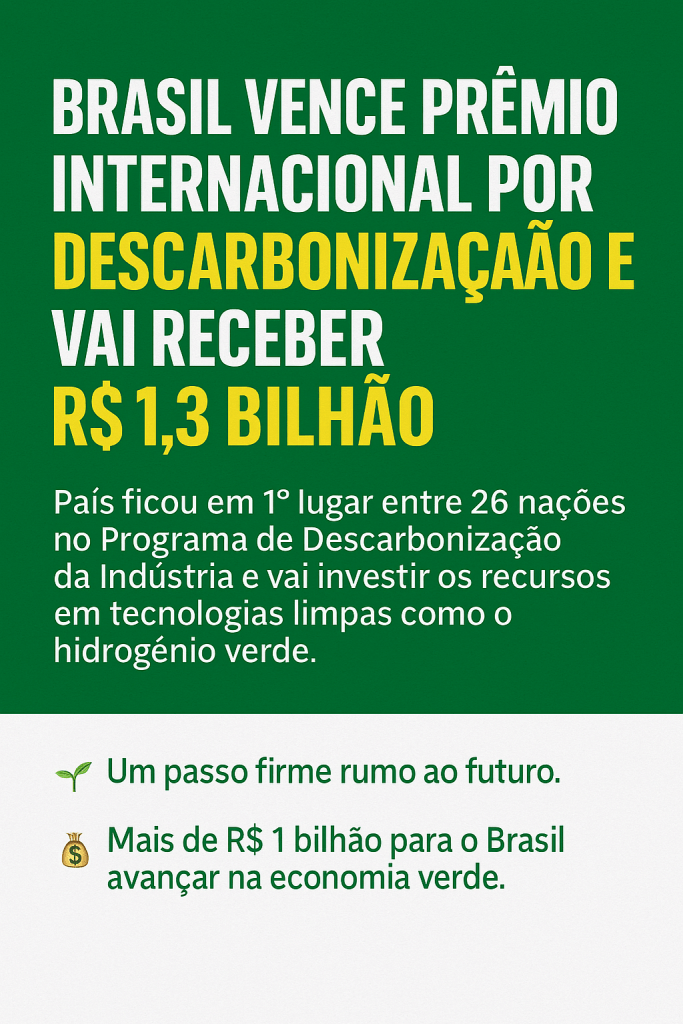 O Brasil conquistou um importante reconhecimento internacional ao alcançar o 1º lugar no Programa de Descarbonização da Indústria (PID), promovido pelo Fundo de Investimentos Climático (CIF). Ao todo, 26 países disputaram o financiamento, mas foi a proposta brasileira que recebeu a pontuação mais alta, garantindo um prêmio de R$ 1,3 bilhão.
