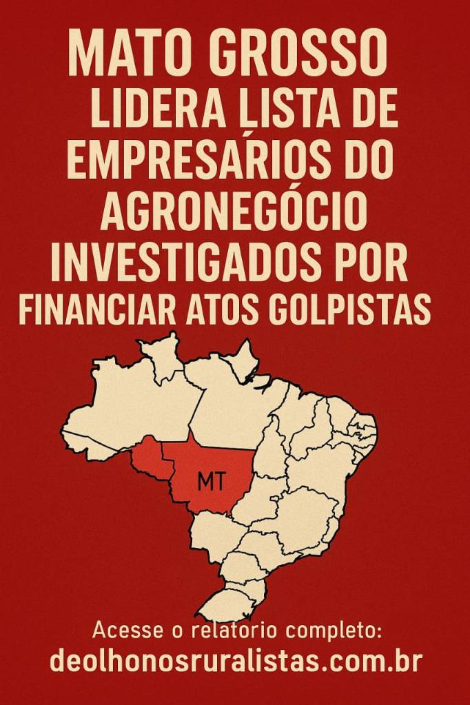 O estado de Mato Grosso, conhecido como “celeiro do Brasil”, é também o principal foco das investigações sobre a participação de empresários do agronegócio na tentativa de golpe registrada após as eleições presidenciais de 2022. Segundo o relatório “Agrogolpistas”, produzido pelo observatório De Olho nos Ruralistas, 74 dos 142 nomes listados – o equivalente a 52% – têm atuação direta no estado.