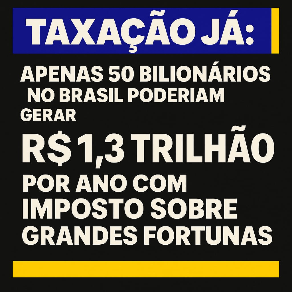 Um levantamento divulgado pelo portal UOL aponta que apenas 50 bilionários brasileiros concentram uma fortuna capaz de gerar R$ 1,3 trilhão por ano, caso fossem devidamente taxados. O dado foi repercutido pelo deputado federal Lindbergh Farias, que defende a implementação de um imposto sobre grandes fortunas como forma de tornar o sistema tributário mais justo no país.