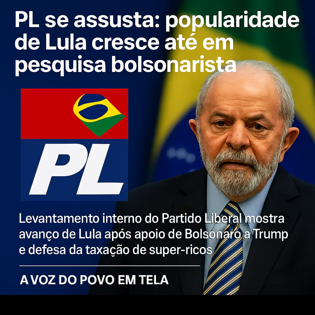 A popularidade do presidente Luiz Inácio Lula da Silva cresceu de forma significativa nas últimas semanas — e o dado surpreendente veio de onde menos se esperava: uma pesquisa interna encomendada pelo próprio Partido Liberal (PL), sigla do bolsonarismo. A informação foi revelada pela jornalista Bela Megale, em coluna publicada no jornal O Globo nesta segunda-feira (14).