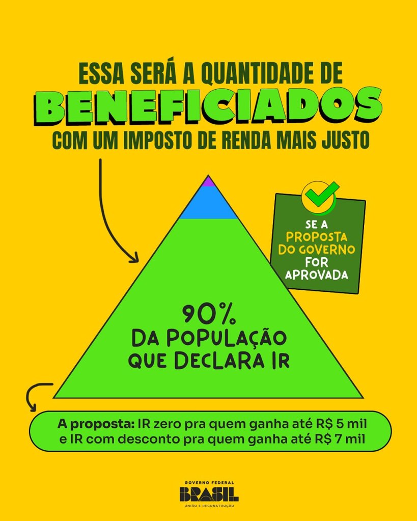 “Essa será a quantidade de beneficiados com um imposto de renda mais justo”, diz a campanha oficial, destacando que a grande maioria dos brasileiros será diretamente favorecida pela mudança.