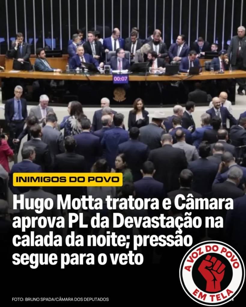 A votação simbólica foi feita às pressas, durante a madrugada, em um claro desrespeito à transparência e ao debate público. Não por acaso: sabiam que, em plena luz do dia, teriam dificuldade em explicar a destruição ambiental que aprovaram.