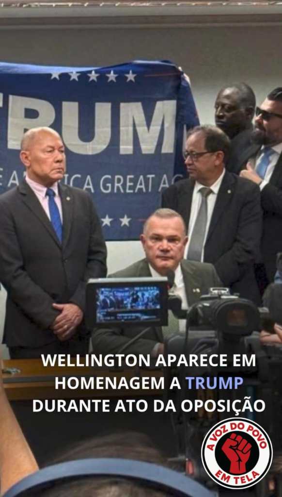 A faixa foi retirada minutos depois, mas o estrago já estava feito. A cena evidencia o grau de submissão de parlamentares brasileiros a uma figura estrangeira, mesmo quando ela atinge diretamente a economia nacional.
