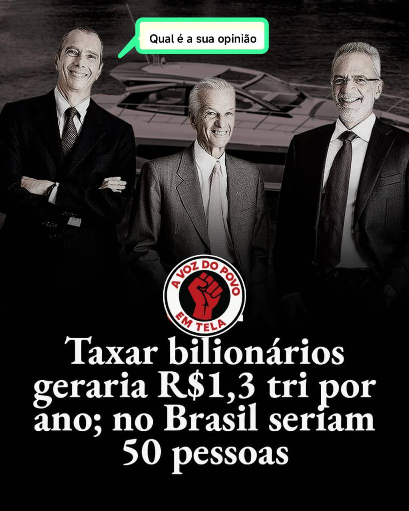 A deputada Sâmia Bomfim (PSOL) resumiu bem o absurdo: “Bilionários não deveriam existir. Mas já que existem, o mínimo é que sejam proporcional e devidamente taxados”.