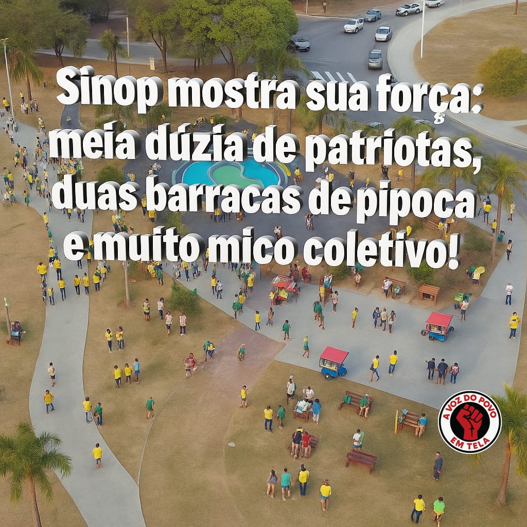 A Praça da Bíblia, coitada, foi o palco de mais um mico nacional. De Brasília a Sinop, a cena se repete: cadeiras vazias, bandeiras desbotadas e cartazes com erros de português. E o som? O som é do fracasso ecoando alto.