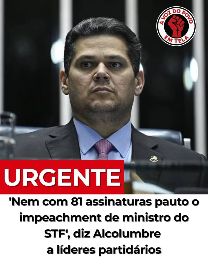 E aí veio o balde de água fria: o presidente do Senado, Davi Alcolumbre, avisou, em alto e bom som, a líderes partidários que não pautará nenhum pedido de impeachment de ministro do STF. A frase foi direta:
