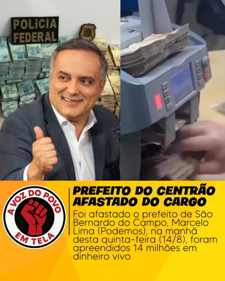 A casa caiu para Marcelo Lima (Podemos), prefeito de São Bernardo do Campo, que foi afastado do cargo por um ano após decisão judicial decorrente da Operação Estafeta, da Polícia Federal. A investigação apura suspeitas de corrupção, lavagem de dinheiro e organização criminosa que teriam movimentado cifras milionárias às custas dos cofres públicos.