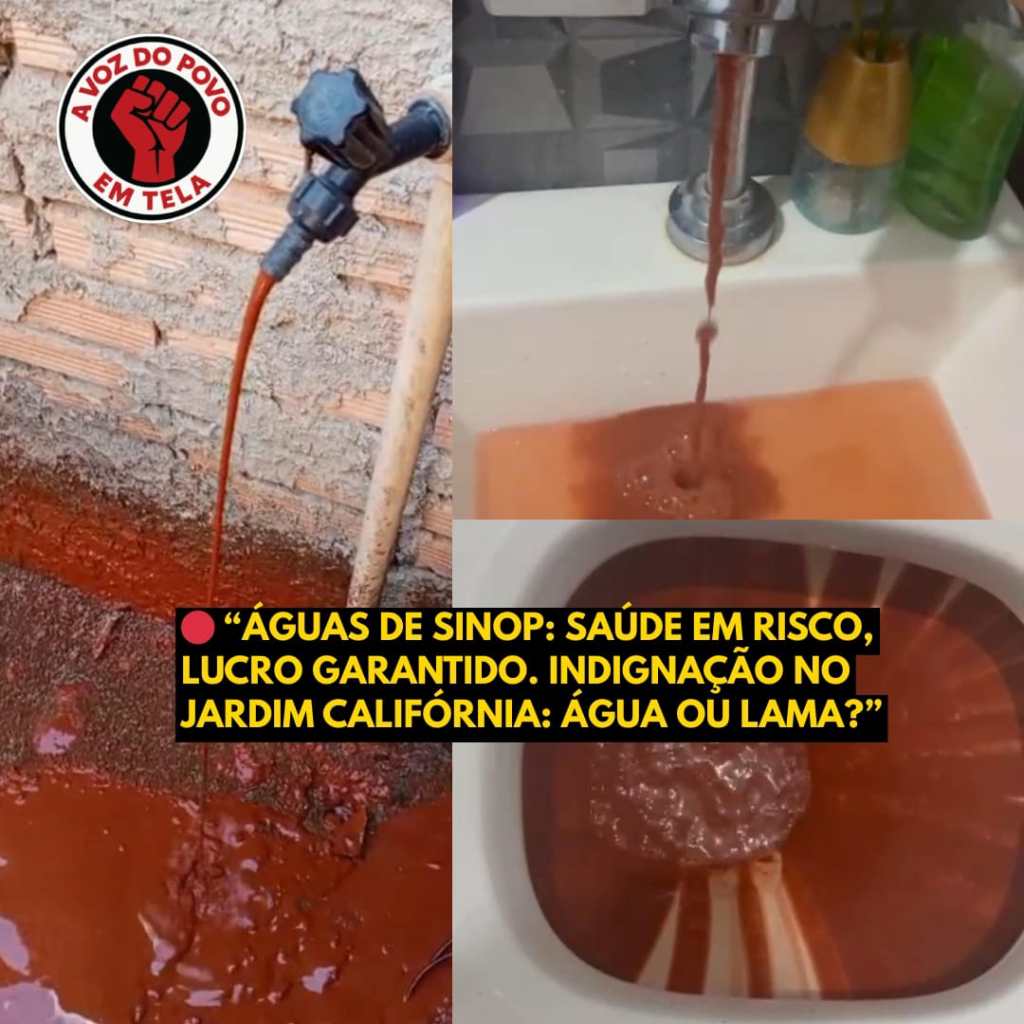 Na tarde desta quinta-feira, dia 28 de agosto de 2025, moradores do bairro Jardim Califórnia, em Sinop, foram surpreendidos com a qualidade da água que chegava às torneiras de suas casas. Em vídeos gravados no momento, o que se vê é um líquido espesso, com cor de sangue, saindo diretamente dos encanamentos.