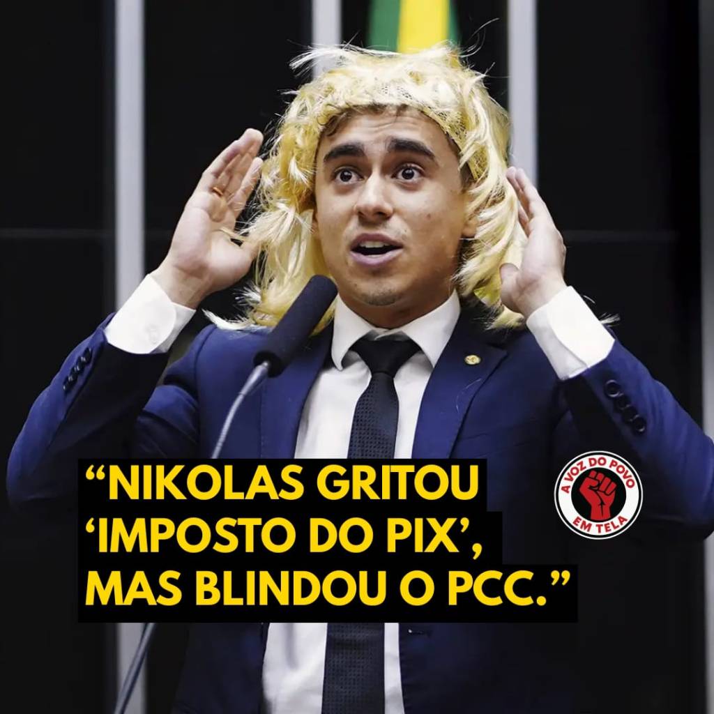A hipocrisia é gritante: Nikolas grita “imposto do Pix”, mas a verdade é que a farsa só ajudou a blindar criminosos. Nikolas acusa o PT de vínculos que nunca existiram, mas vê sua própria família atolada em tráfico. Nikolas se vende como moralista, mas a moral é seletiva — e cai por terra quando os fatos batem à porta.