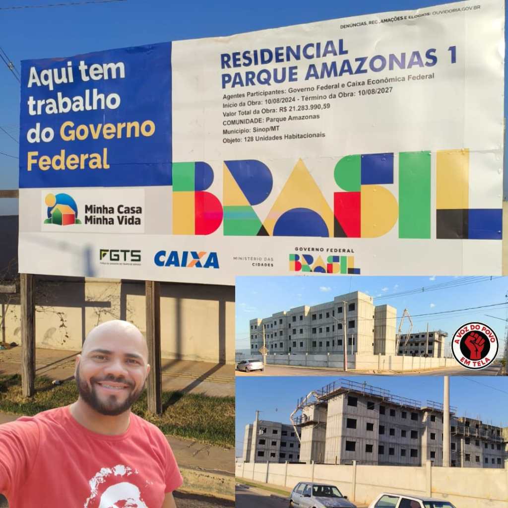 Na manhã deste sábado, 30 de agosto de 2025, o presidente do Partido dos Trabalhadores (PT) de Sinop, Ney da Saúde, fez vistoria in loco nas obras do Residencial Parque Amazonas I, do programa Minha Casa, Minha Vida, em Sinop (MT). Ao destacar a placa com o “Aqui tem trabalho do Governo Federal”, Ney reforçou que a cidade voltou a receber investimentos porque o presidente Lula recolocou a moradia como prioridade nacional.