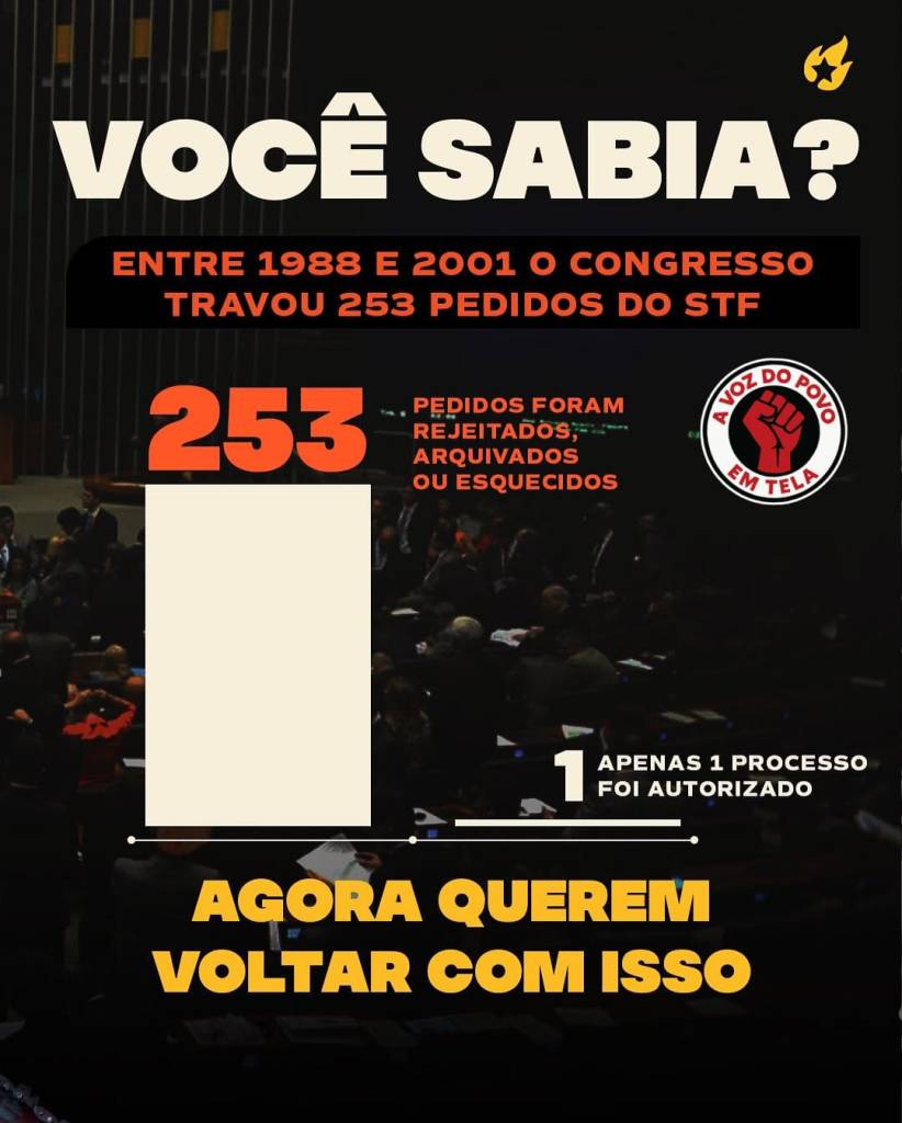 Quando a memória falha, os números falam: 253 vezes a Câmara e o Senado protegeram investigados entre 1988 e 2001. E é exatamente esse modelo que a atual bancada bolsonarista tenta ressuscitar com a chamada “PEC da Blindagem”.