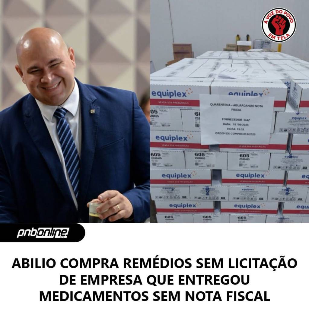 Fonte principal: PNB Online — “Abilio compra remédios sem licitação de empresa que entregou medicamentos sem nota fiscal”